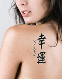 The DOWNLOAD FORMAT Tattoo Design (Adobe PDF ) provides you with everything you need for the perfect Faustina With Meaning Good Luck Japanese Tattoo. This includes the line art (also called a stencil) that your tattoo artist must have to correctly ink the tattoo.