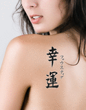 The DOWNLOAD FORMAT Tattoo Design (Adobe PDF ) provides you with everything you need for the perfect Faustina With Meaning Good Luck Japanese Tattoo. This includes the line art (also called a stencil) that your tattoo artist must have to correctly ink the tattoo.
