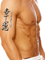 The DOWNLOAD FORMAT Tattoo Design (Adobe PDF ) provides you with everything you need for the perfect Faustino With Meaning Good Luck Japanese Tattoo. This includes the line art (also called a stencil) that your tattoo artist must have to correctly ink the tattoo.