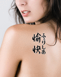 The DOWNLOAD FORMAT Tattoo Design (Adobe PDF ) provides you with everything you need for the perfect Felecia With Meaning Happy Japanese Tattoo. This includes the line art (also called a stencil) that your tattoo artist must have to correctly ink the tattoo.