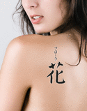 Flora written vertically in katakana with the meaning "Flower" written in kanji vertically in a