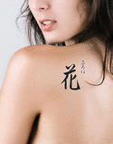 Floy written vertically in hiragana with the meaning "Flower" written in kanji vertically in a