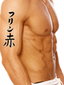 Flynn written vertically in katakana with the meaning "Red" written in kanji vertically in a