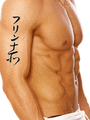 Flynn written vertically in katakana with the meaning "Red" written in kanji vertically in a