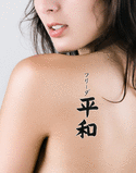 The DOWNLOAD FORMAT Tattoo Design (Adobe PDF ) provides you with everything you need for the perfect Freda With Meaning Peace Japanese Tattoo. This includes the line art (also called a stencil) that your tattoo artist must have to correctly ink the tattoo.