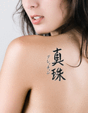 The DOWNLOAD FORMAT Tattoo Design (Adobe PDF ) provides you with everything you need for the perfect Gretchen With Meaning Pearl Japanese Tattoo. This includes the line art (also called a stencil) that your tattoo artist must have to correctly ink the tattoo.
