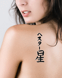Hester written vertically in katakana with the meaning "Star" written in kanji vertically in a