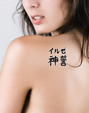 Ilse written horizontally from left to right in katakana with the meaning "God's Oath" written in kanji in a