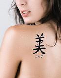 Inga written horizontally from left to right in hiragana with the meaning "Beautiful" written in kanji vertically in a