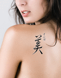 Inga written vertically in katakana with the meaning "Beautiful" written in kanji vertically in a Design font.
