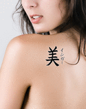 Inger written vertically in katakana with the meaning "Beautiful" written in kanji vertically in a