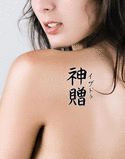 Isadora written vertically in katakana with the meaning "God's Gift" written in kanji in a