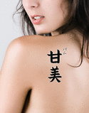 Pam written vertically in katakana with the meaning "Sweet" written in kanji in a