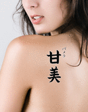 Pamela written vertically in katakana with the meaning "Sweet" written in kanji in a