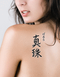 Pearl written vertically in hiragana with the meaning "Pearl" written in kanji in a
