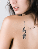 Priscila written vertically in katakana with the meaning "Exalted" written in kanji in a