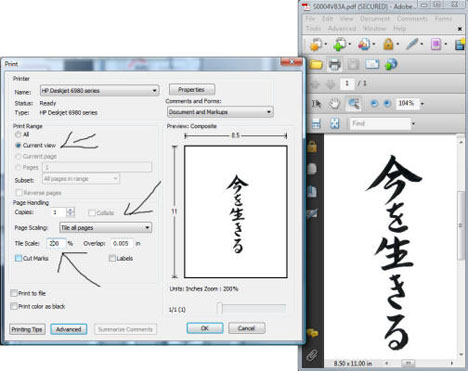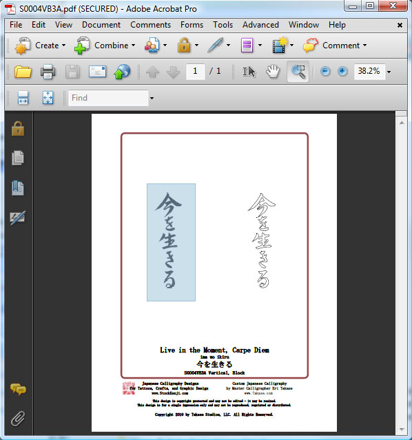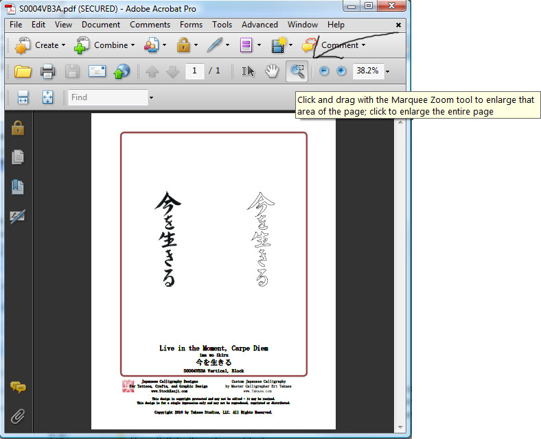 The Adobe PDF Designs purchased from StockKanji - Japanese Calligraphy Designs can be easily resized. Below we show how to do this in detail.