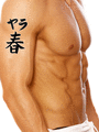 Yara written horizontally from left to right in katakana with the meaning "Spring" written in kanji vertically in a