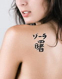 Immediately download your Zora (zO-rah) Meaning Dawn Japanese Tattoo Horizontal Katakana (VB1A) tattoo design when your order is placed. There is no waiting.