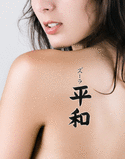 Zula written vertically in katakana with the meaning " Peace " written in kanji in a